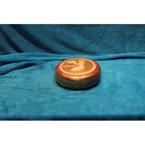 Amsterdam Blik (20ᵉ eeuw) Ronde chocolatrommel, versierd met dame 4 x Ǿ 12 cm. Gemerkt: Tjoklatfabriek N.V. Amsterdam