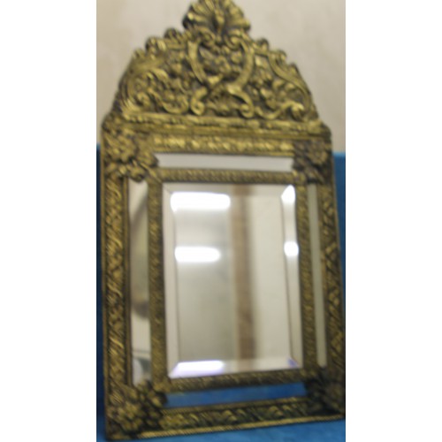 Latoen koper (ca. 1930) Kantige halspiegel met geslepen glas in vergulde ornamentenlijst met kuif